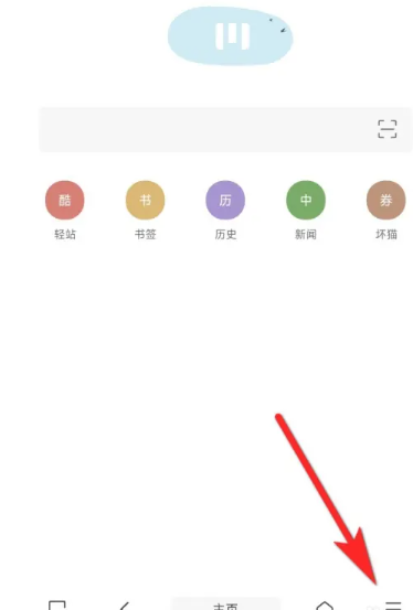 1、进入M浏览器软件, 点击右下角的设置,如下图箭头所指位置;