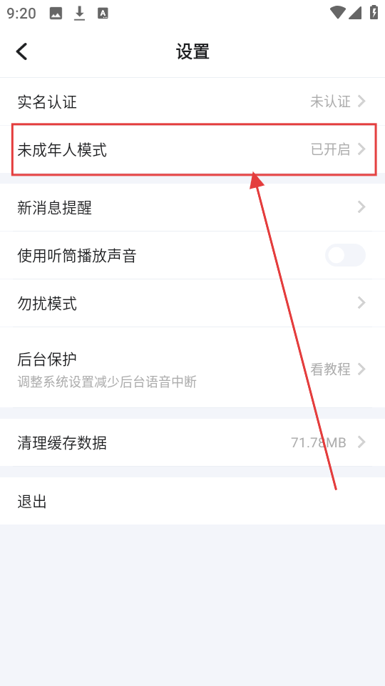 2、进入设置页面后,点击【未成年人模式】,可进入未成年人模式页面,查看模式状态哦。