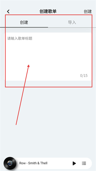 2、在创建歌单页的输入框中填写歌单标题,完成后点击右上角的【创建】按钮就能生成歌单哦。