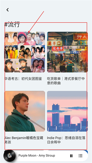 4、进入流行歌单页后,能看到各类流行主题歌单,选感兴趣的歌单点进去,就能收听对应的歌曲内容啦。