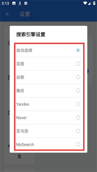 4、然后弹出的页面中,选择一个搜索引擎即可。