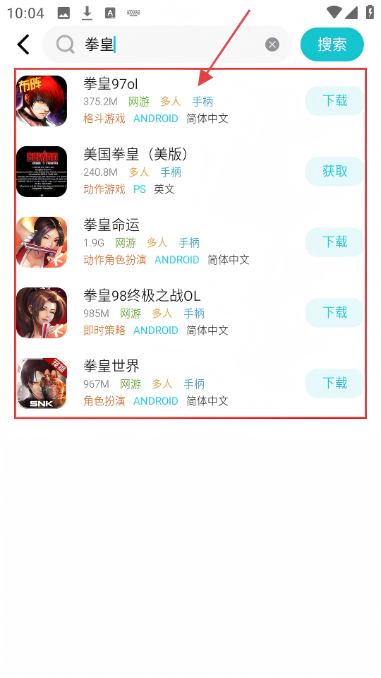 3、搜索结果里,有多个相关游戏,选想玩的,点击进入详情页,超简单。