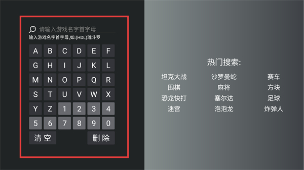 2、进入搜索界面后,在输入框填写游戏名字首字母,也能参考右侧热门搜索,快速定位目标游戏哦。