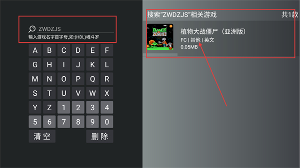 3、输入对应首字母(如【ZWDZJS】)后,右侧会显示匹配的游戏,点击目标游戏即可进入详情页面呀。