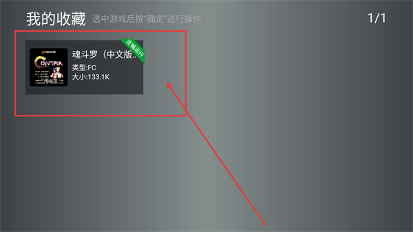 4、在我的收藏页,能看到刚收藏的【魂斗罗(中文版)】,选中后按确定就能进行相关操作啦。