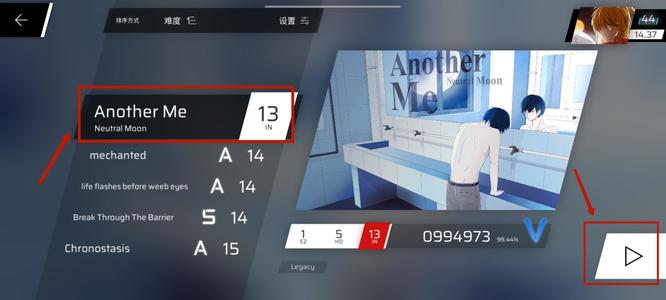 可以看到Another Me歌曲,点击右边三角符号即可进行游玩。