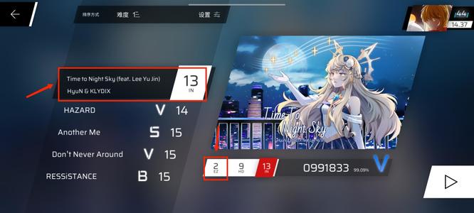 游玩Time to Night Sky歌曲,建议游玩EZ难度,获得A评级以上(即分数为880000以上)可以解锁HAZARD歌曲。