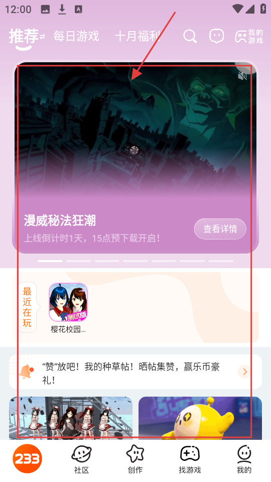 1、我们在软件推荐页面,看到【漫威秘法狂潮】的相关展示,点击它就能进入游戏详情页啦。