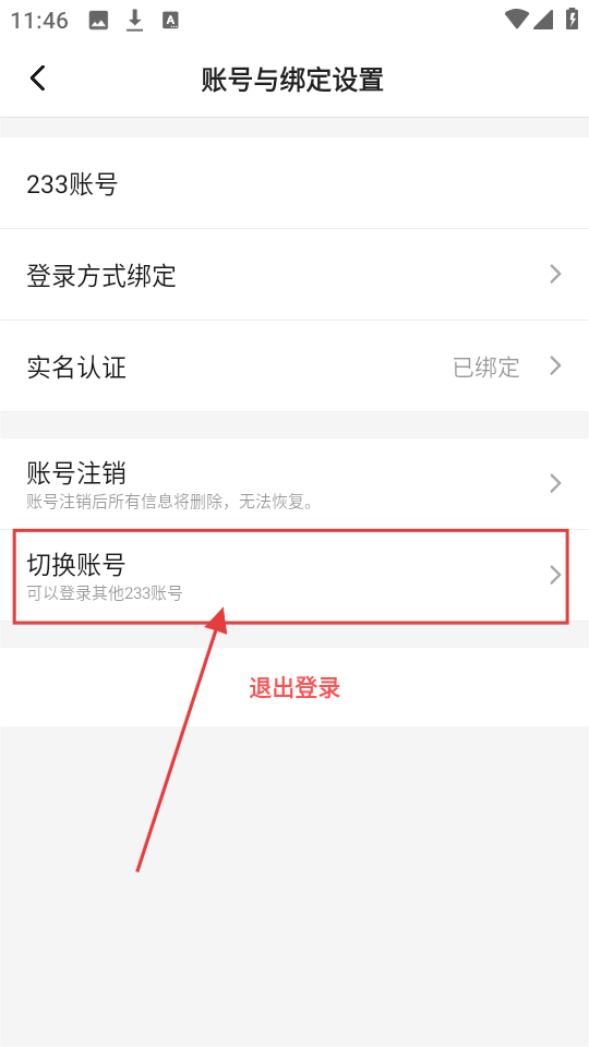 3、进入【账号与绑定设置】页面后,我们点击【切换账号】选项,就能进入切换账号的页面啦。