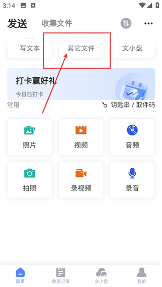 1、在发送页点【其它文件】选项,能进入文件选择界面,后续可挑选要发送的本地文件啦。