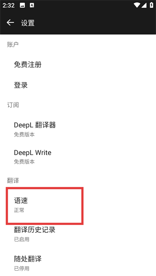 2、在设置页面找到【语速】选项,当前显示为“正常”,点击就能进入语速调整界面哦。