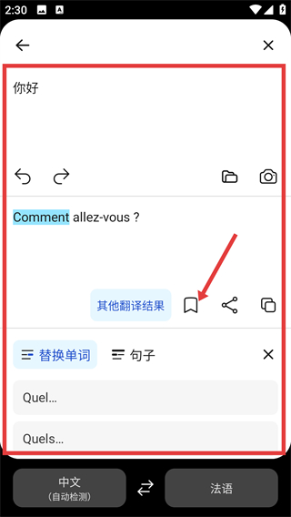 3、输入内容完成翻译后,点翻译结果旁的收藏按钮,能将这段译文收藏起来方便后续使用呀。