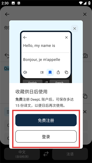 4、收藏时会弹出登录提示,点【免费注册】或【登录】按钮,完成账号操作就能保存收藏啦。