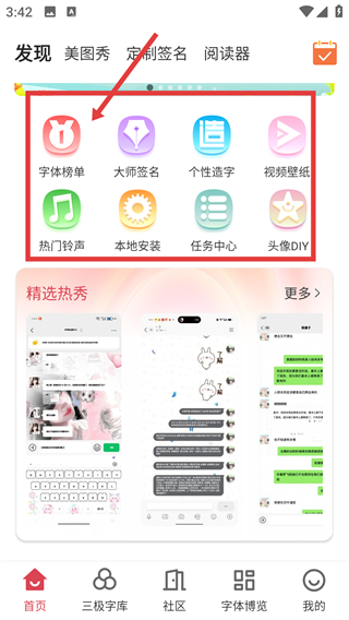 1、首先打开字体美化大师,选择喜欢的字体