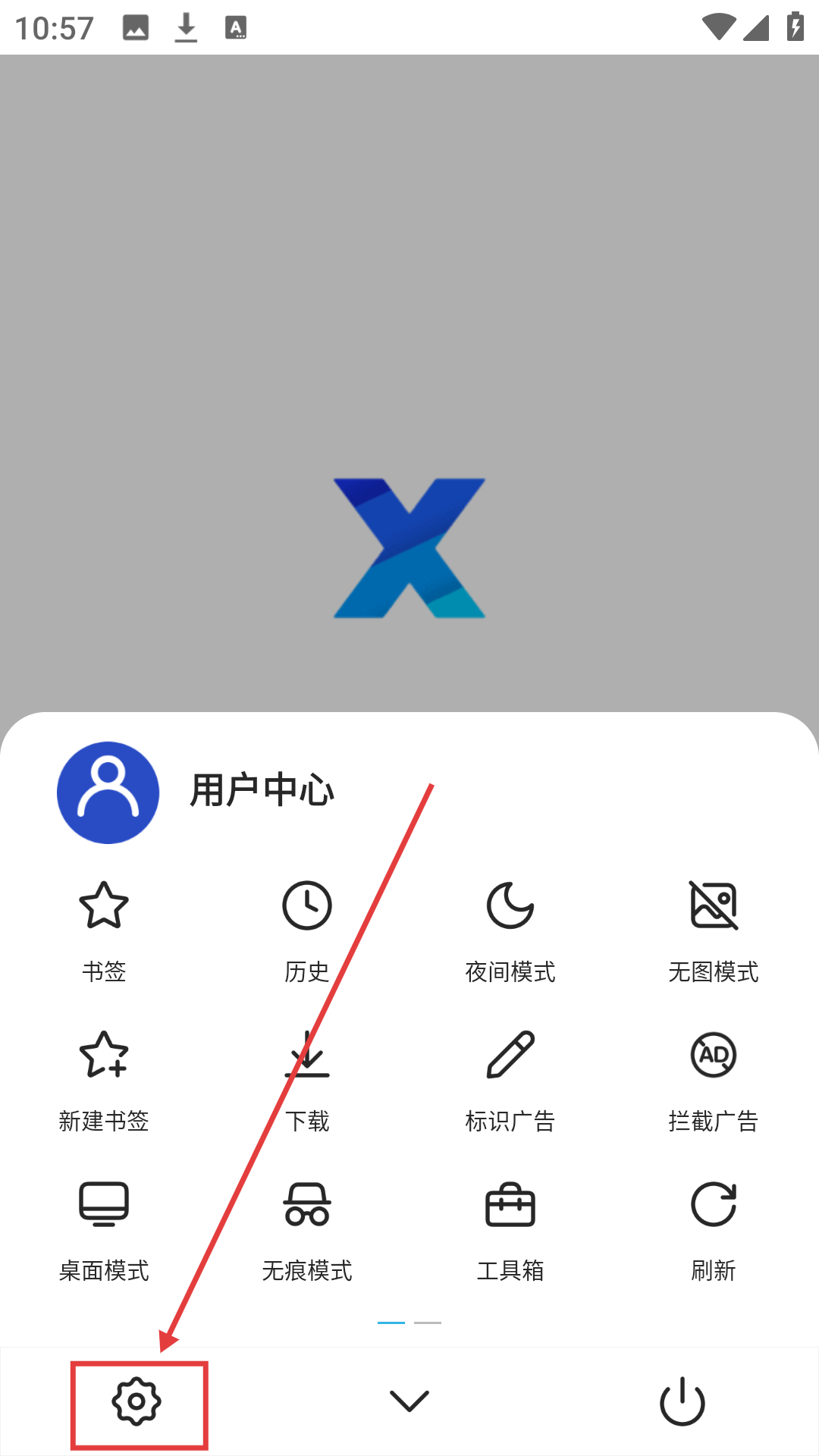 3、打开X浏览器,进入 浏览器设置》用户中心》从html文件导入书签