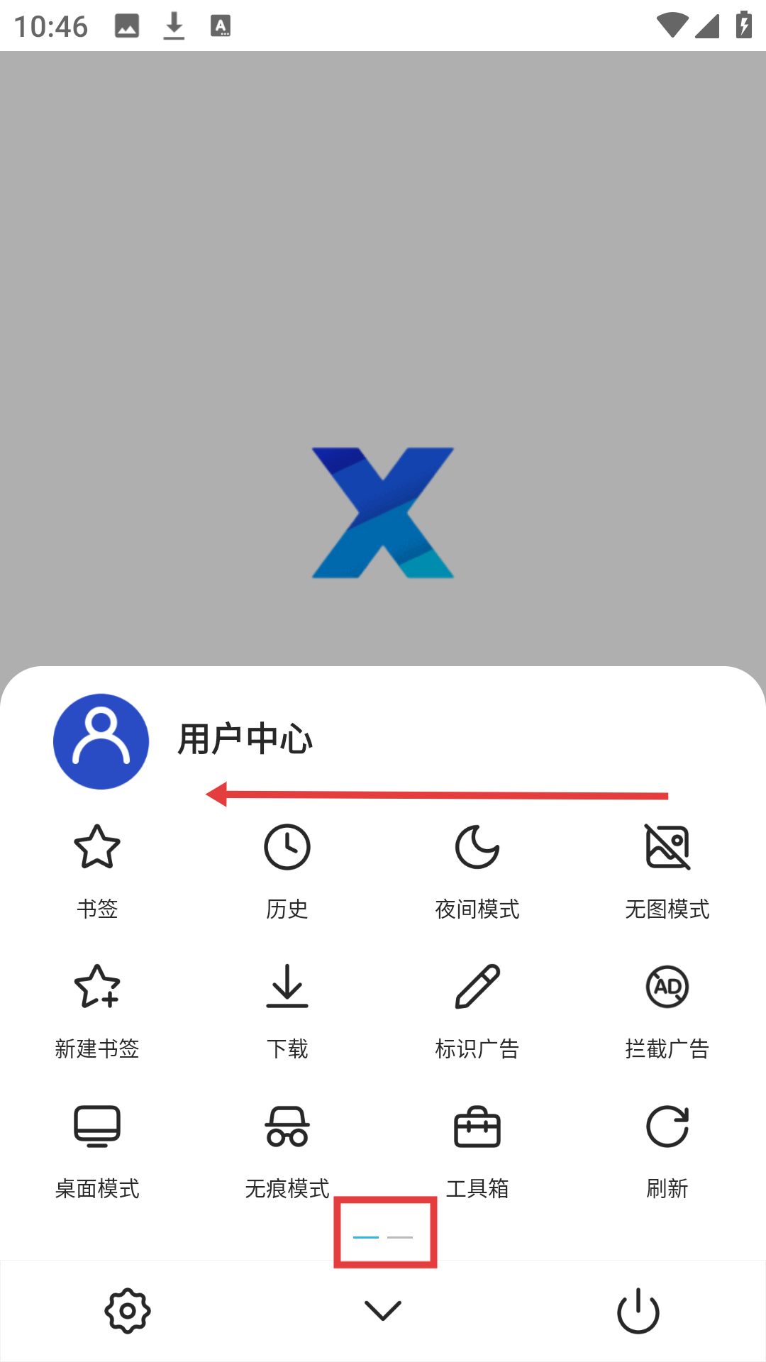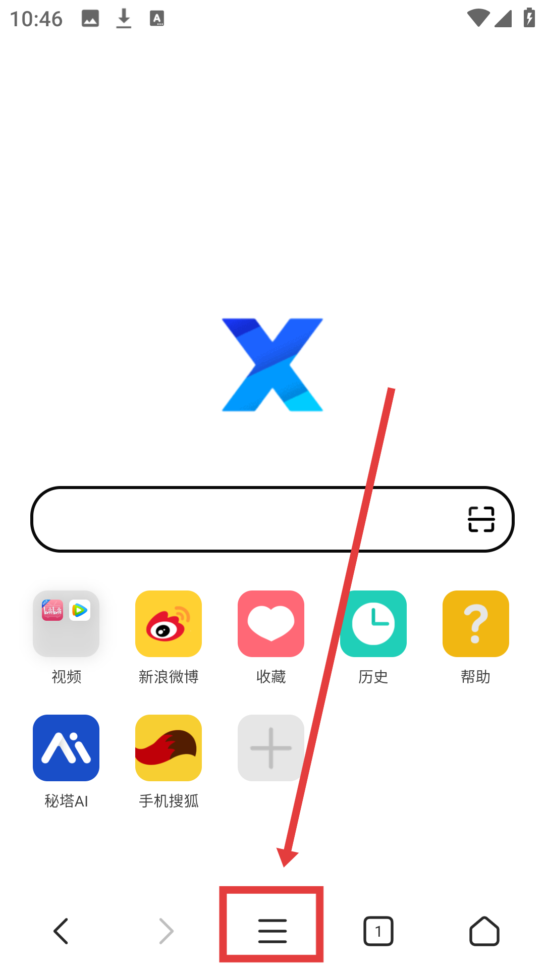 1、在浏览器界面,点击底部三横线菜单按钮,可展开功能菜单,准备进行UA切换操作啦。