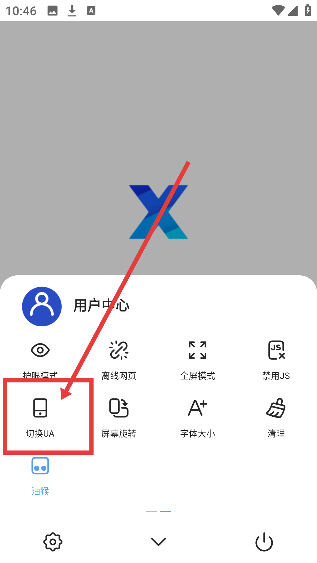3、在用户中心功能列表中,点击【切换UA】,可进入UA选择界面啦。
