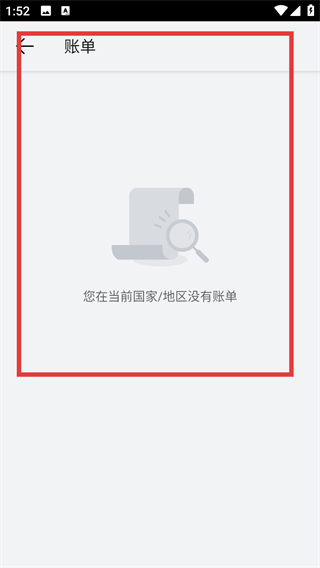 4、进入账单页面后,可查看当前地区的消费账单,若暂无消费则会显示对应提示哦。
