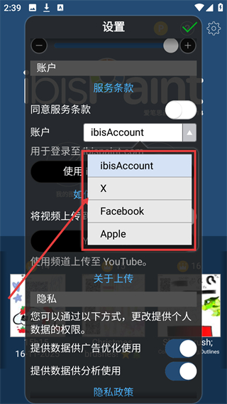 2、进入设置页后,在账户板块找到【ibisAccount】选项,可选择对应的登录方式来登录账号哦。