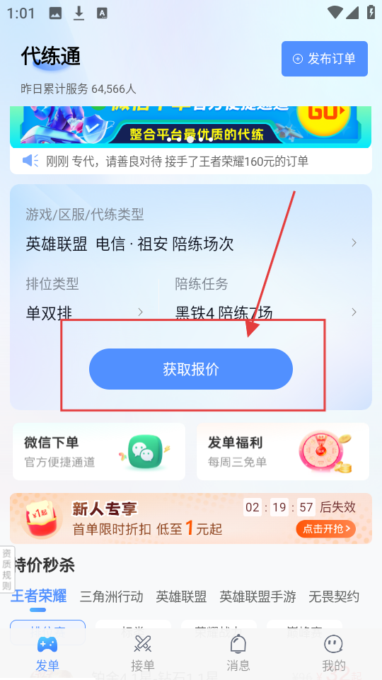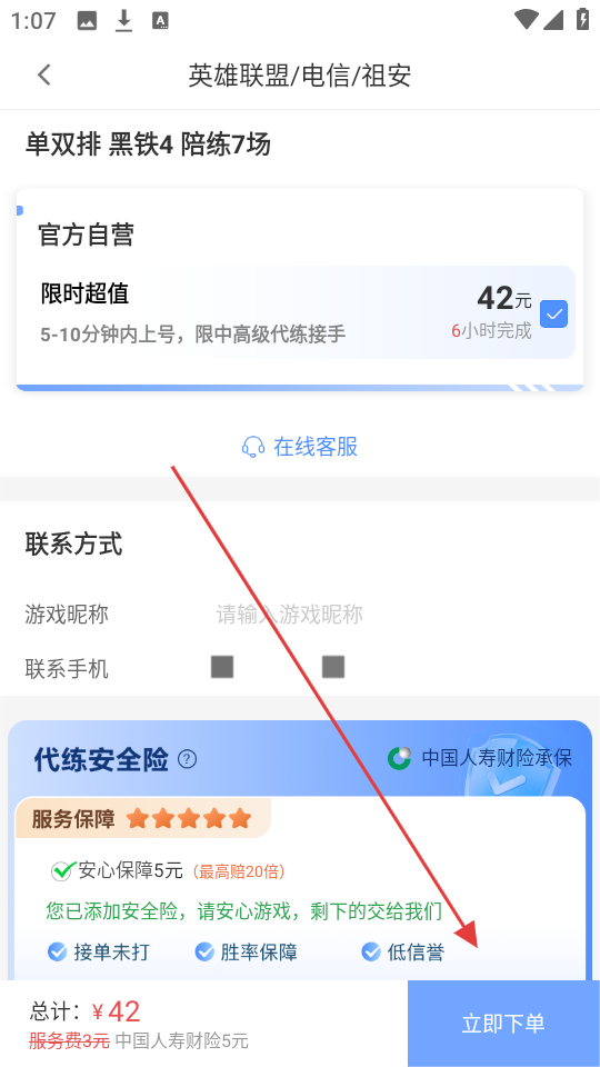4、报价页选套餐后点【立即下单】,完成代练订单,是不是很赞呀。