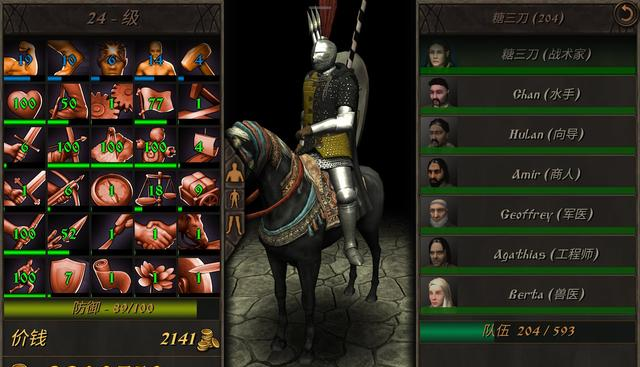 3、雇佣NPC:游戏内共11位npc,可在城镇的酒馆中雇佣。括号内为npc刷新的国家:教练(大宋)、乡绅(镰仓幕府)、向导(蒙古帝国)、射手(英格兰)、军医(法兰西)、水手(挪威)、商人(鲁姆苏丹)、战术家(罗马)、兽医(波兰),剑术大师(拉杰普联)和工程师(拜占庭)。