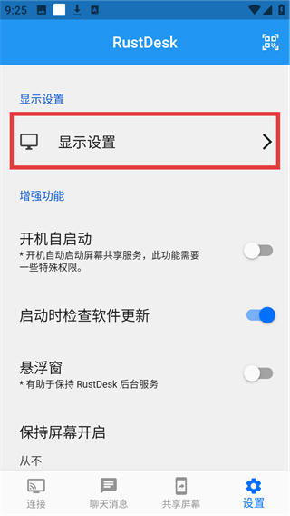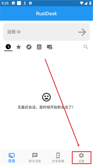 1、在【RustDesk】主界面点击底部【设置】按钮,就能进入系统设置页面,调整各类功能配置啦。