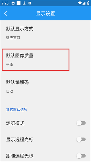 3、在显示设置页找到【默认图像质量】选项,点击它就能展开质量选择的弹窗,准备切换模式啦。