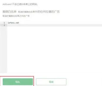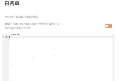 3、在白名单中输入你想加入的网站网址,它会自动保存