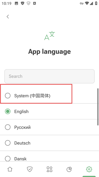 4、在语言选择页面选中【System-(中国简体)】选项,就能将应用语言切换为中文,使用起来更顺手啦。