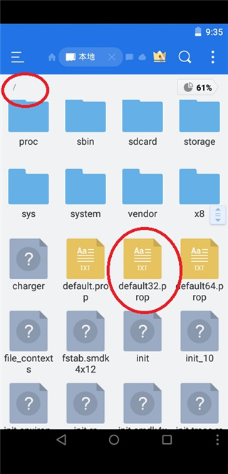 3、启动文件管理器(可能需要给ROOT权限),去到根目录,找到default32.prop文件。