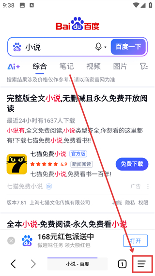 3、搜索结果页加载完成后,点右下角的菜单按钮,就能展开功能选项栏,使用更多工具啦。