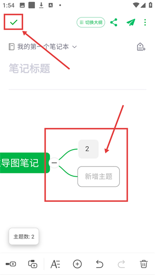 4、完成主题添加后,点左上角的对勾按钮,就能保存当前的思维导图编辑内容,收尾创作哦。