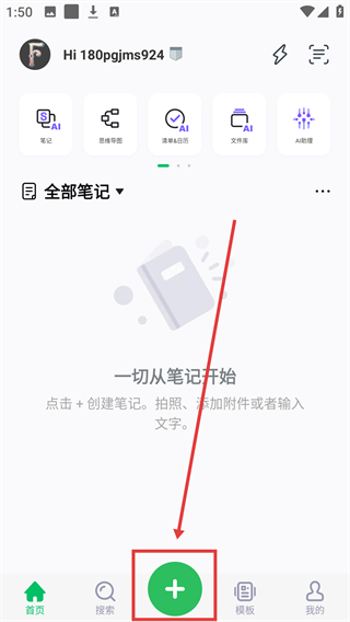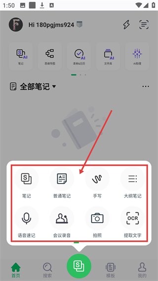 1、在首页点击底部绿色【+】按钮,弹出创作选项菜单,可选择不同的笔记类型开始创作哦。