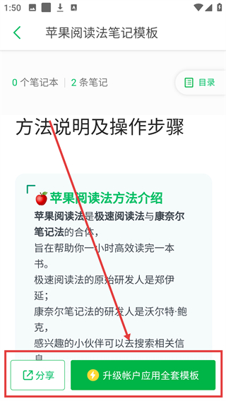 3、在模板页面选择【苹果阅读法笔记模板】,进入该模板的详情页面查看内容哦。