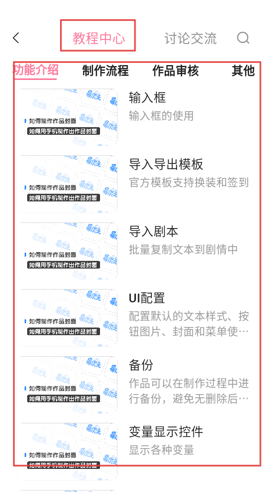 3、进入【教程中心】,能看到功能介绍、制作流程等分类,里面有不少实用的创作教程呢。
