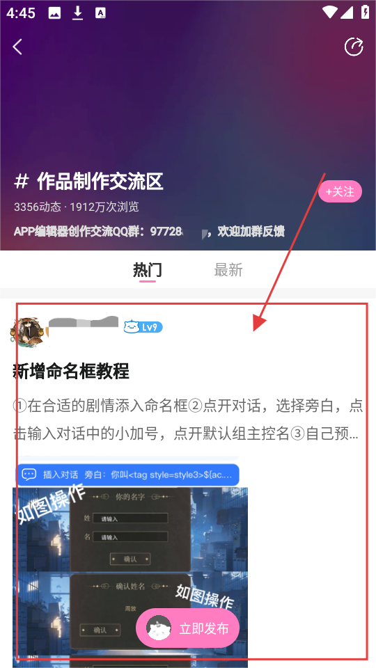 4、在作品制作交流区,有玩家分享的教程,像【新增命名框教程】,能学习创作技巧哦。