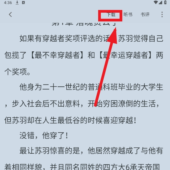 4、进入阅读界面,点击上方下载