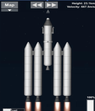 3、起飞的时候需要五个染料一起点燃,中间的染料会先用完,用完后丢掉可以降低火箭的重量;