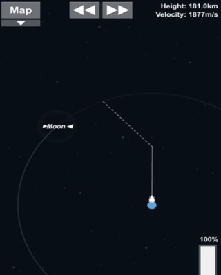 4、然后打开地图观看火箭的轨迹有没有接近月球的轨道,然后把用完的四个氮气桶脱离;