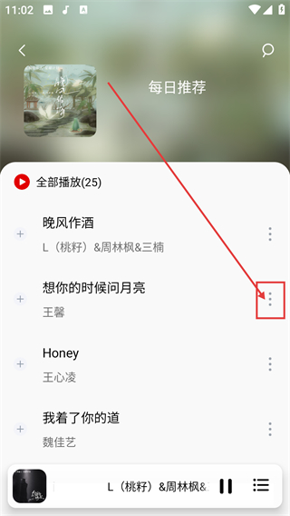 1、在每日推荐歌单页点击歌曲右侧的三点按钮,就能展开操作菜单,进行收藏等操作啦。