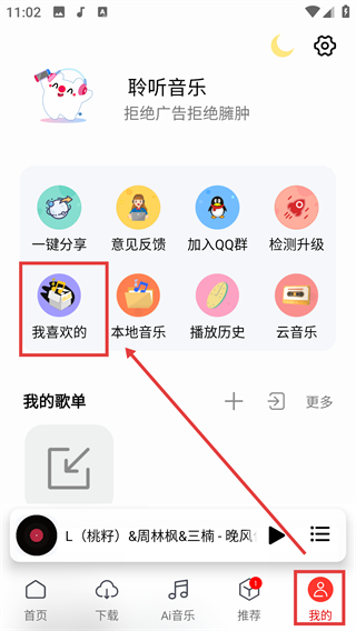 3、点击底部的【我的】选项进入个人页,选择【我喜欢的】就能查看已收藏的歌曲啦。