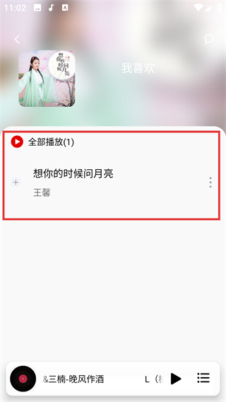 4、在【我喜欢的】歌单页可看到收藏的歌曲,还能点击【全部播放】按钮连续播放这些歌曲哦。