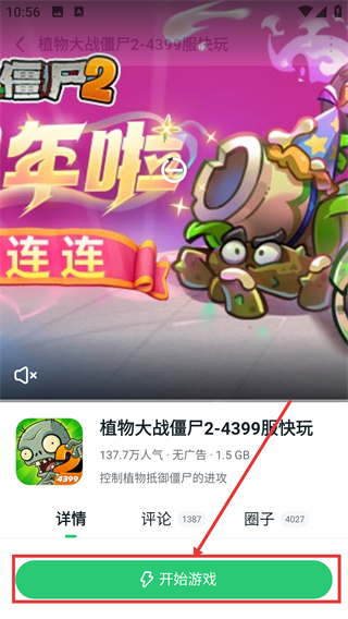 4、进入游戏详情页后,点击底部的【开始游戏】按钮,就能直接进入游戏开始体验啦。