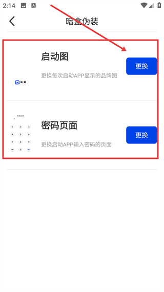 2、进入暗盒伪装页后,能看到【启动图】【密码页面】的更换选项,点对应按钮就能调整哦。