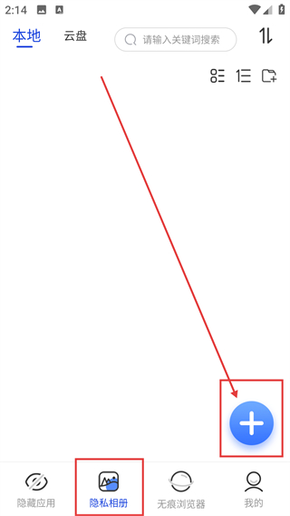 4、在隐私相册页点右下角【+】按钮,就能添加新的内容到隐私相册里,保护私密文件哦。