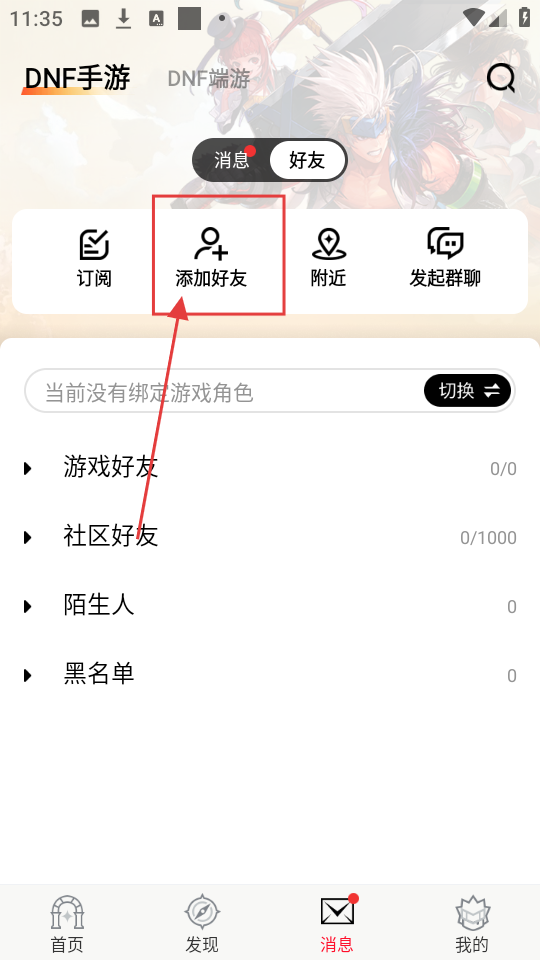 2、在消息页面点击【添加好友】选项,即可进入添加好友页面啦。