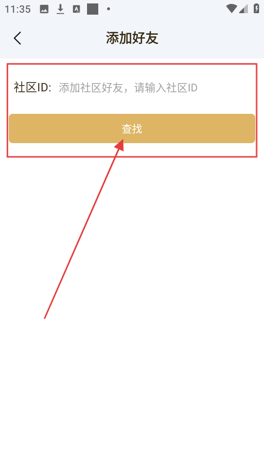 3、在添加好友页面输入社区ID后,点击【查找】按钮,可查找对应的好友哦。