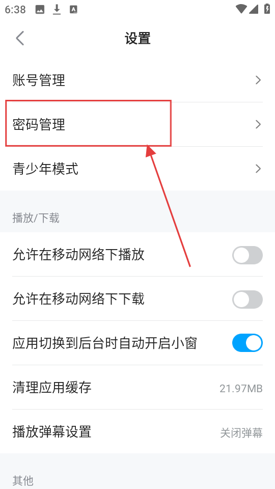 3、在设置页面,点击【密码管理】选项,进入密码修改页面,可进行密码修改操作呢。