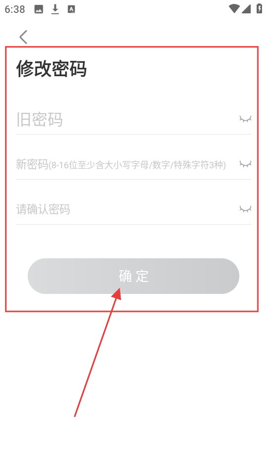 4、在密码修改页面,依次输入旧密码、符合要求的新密码并确认,然后点击【确定】按钮,即可完成密码修改啦。
