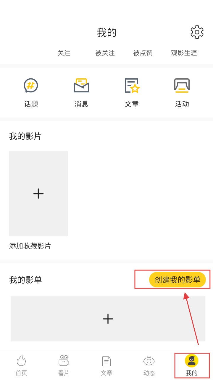 1、在【我的】界面点击【创建我的影单】,进入创建影单界面,准备打造专属影单哦。
